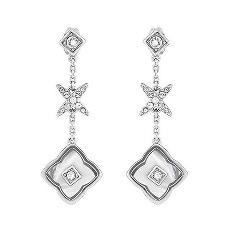 Un design davvero innovativo caratterizzato da resina bianca con una delicata stella di cristallo Swarovski® a quattro punte su una delicata catena lineare rodiata. Questi orecchini a fiore colpiscono un equilibrio unico nel suo aspetto naturale e prezioso, rendendolo l'aggiunta contemporanea perfetta alla tua collezione.