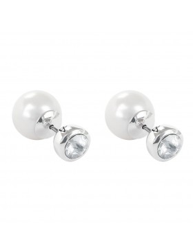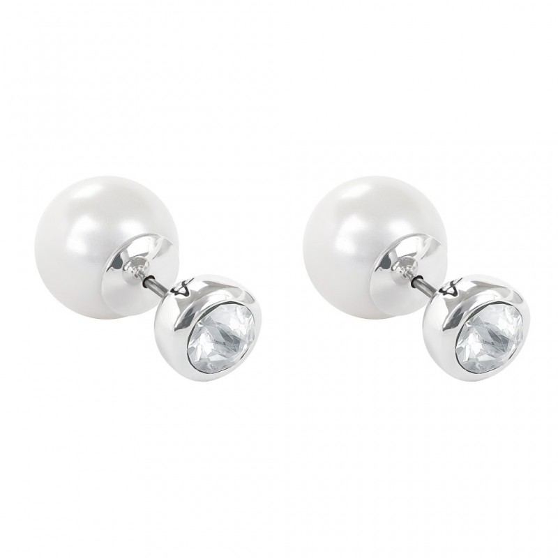 Questi orecchini, placcati in rodio, dalla doppia vestibilità- da un lato una perla bianca, dall’altro un solitario Swarovski®- sono elegante ed unici. Una minuziosa attenzione ai dettagli e alla qualità rende questi orecchini una scelta indicata per ogni look.