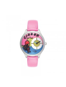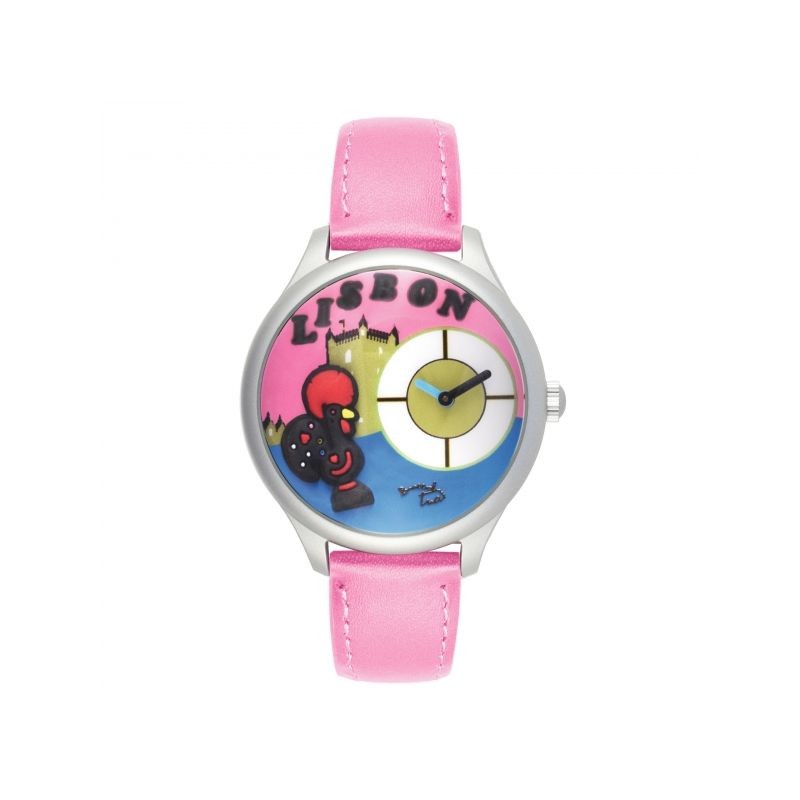 Orologio Braccialini modello Lisbona, Ref. Tua150/pp Prezzo di listino € 69,00 Movimento al quarzo Cassa in alluminio satinato Dimensioni cassa 37 mm Quadrante con disegni tridimensionali Cinturino in pelle rosa