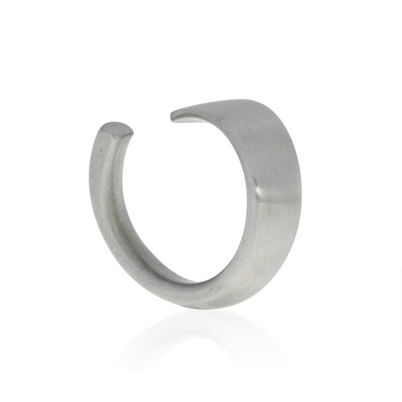 Anello unisex BREIL Stone Sign aperto al centro in acciaio satinato.
