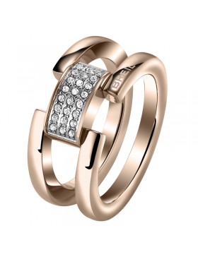 Anello BREIL collezione breilogy, anello, misura 14, in acciaio lucido con trattamento ip oro rosa e cristalli bianchi