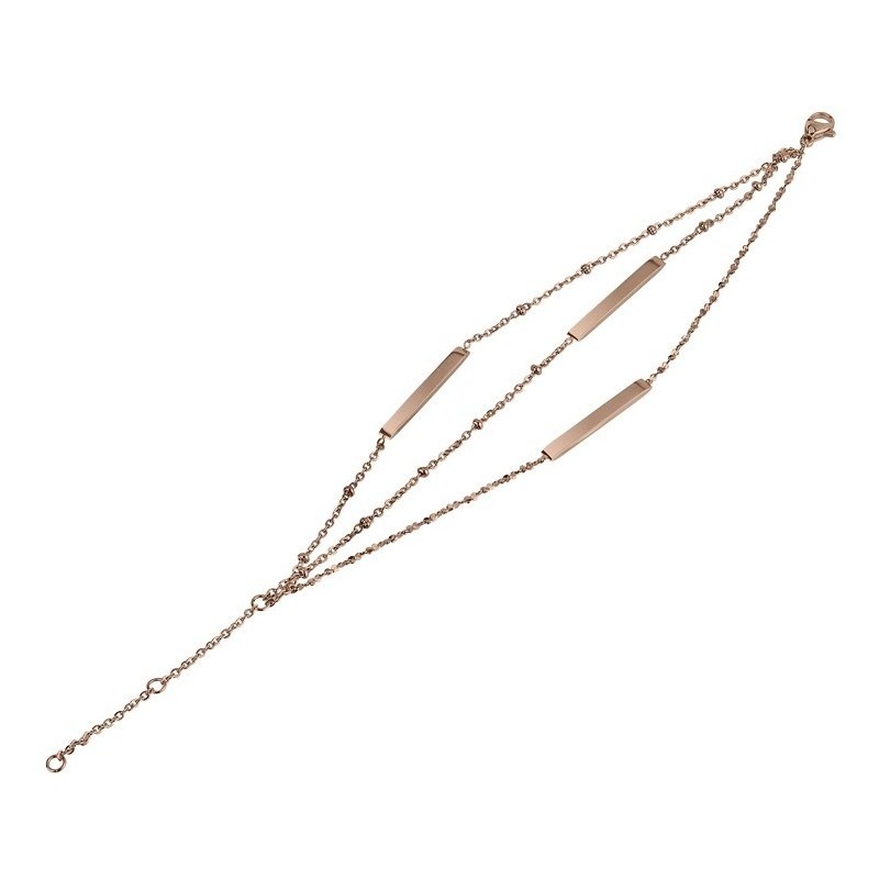 Bracciale in acciaio con trattamento IP rose a tre fili, dal design estremamente contemporaneo. La materia si alleggerisce e diventa sottile nelle forme e nei volumi.