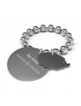 Anello in acciaio inossidabile Nichel Free. Sfere di 4Mm in acciaio. Medaglia in acciaio di 15Mm con inciso il Buon Proposito e sul retro marchio Annabiblo. Anello montato su elastico con diametro 2 Cm.