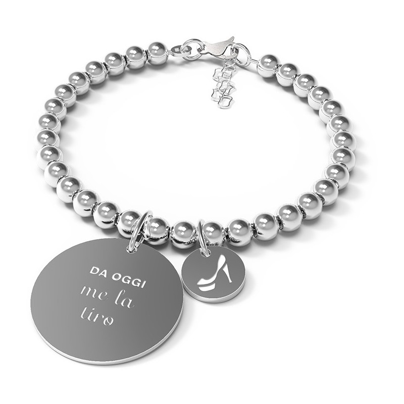 Bracciale da donna della collezione classic della marca 10 Buoni Propositi caratterizzato dall'incisione di uno dei buoni propositi realizzato in acciaio inossidabile aisi 304, nichel free. Sfere della dimensione di 6mm in acciaio. Medaglia in acciaio della dimensione di 28mm con inciso il buon proposito e sul retro il marchio Annabiblo°. Medaglietta in acciaio della dimensione di 12mm con incisa l’icona corrispondente. Bracciale montato su elastico. Lunghezza 17 cm.