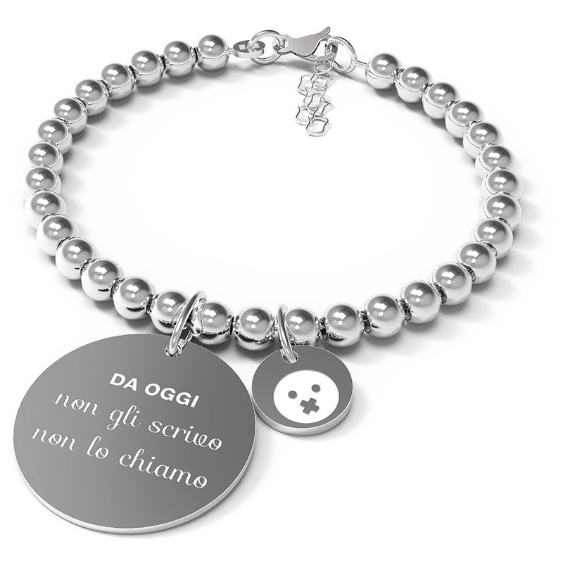 Bracciale da donna della collezione classic della marca 10 Buoni Propositi caratterizzato dall'incisione di uno dei buoni propositi realizzato in acciaio inossidabile aisi 304, nichel free. Sfere della dimensione di 6mm in acciaio. Medaglia in acciaio della dimensione di 28mm con inciso il buon proposito e sul retro il marchio Annabiblo°. Medaglietta in acciaio della dimensione di 12mm con incisa l’icona corrispondente. Bracciale montato su elastico. Lunghezza 17 cm.