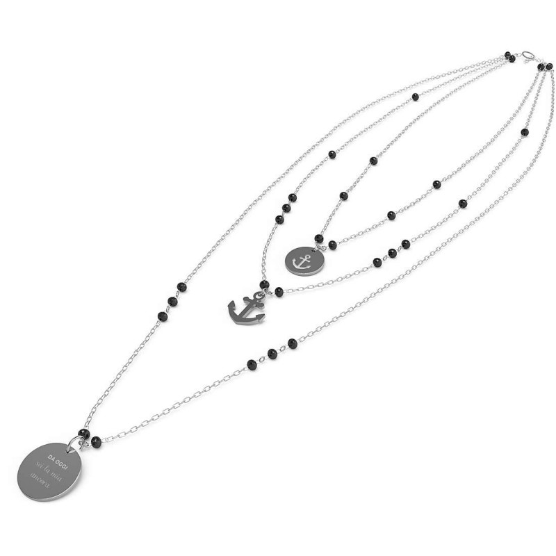 BUONI PROPOSITI COLLANA CRY 'SEI LA MIA ANCORA' SILVER-ONIX DONNA N9825/N