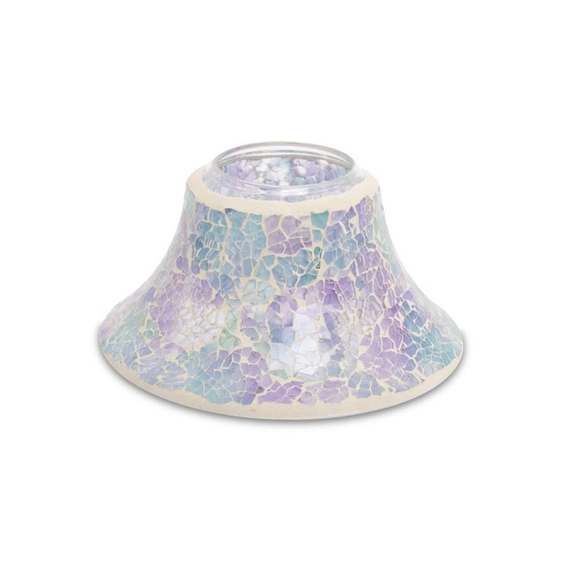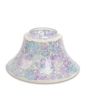 Elegante paralume per proteggere la vostra candela grande. Caratterizzato da un mosaico in vetro dalle sfumature lilla e azzurre con effetto specchio in frantumi, aggiungerà alla vostra casa un tocco di raffinatezza.