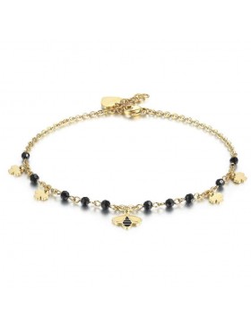 Cavigliera Da Donna Di S'Agapò Della Collezione Haiti. Gioiello Realizzato In Acciaio Con Pvd Oro Con Pendenti A Forma Di Ape. La Referenza È Sht51