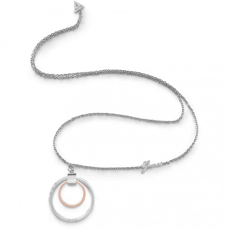 Collana Di Guess Da Donna. Collana In Acciaio Con Pendente A Doppio Cerchio In Acciaio E Acciaio Ip Rose Gold. Lunghezza 81 Cm. La Referenza È Ubn29033