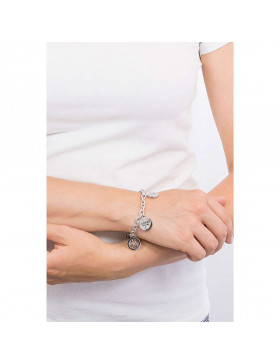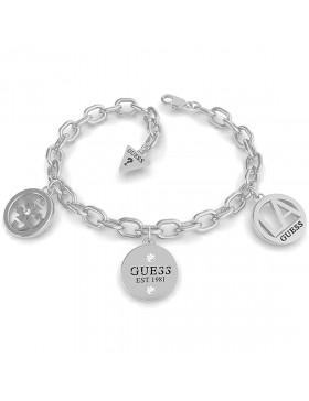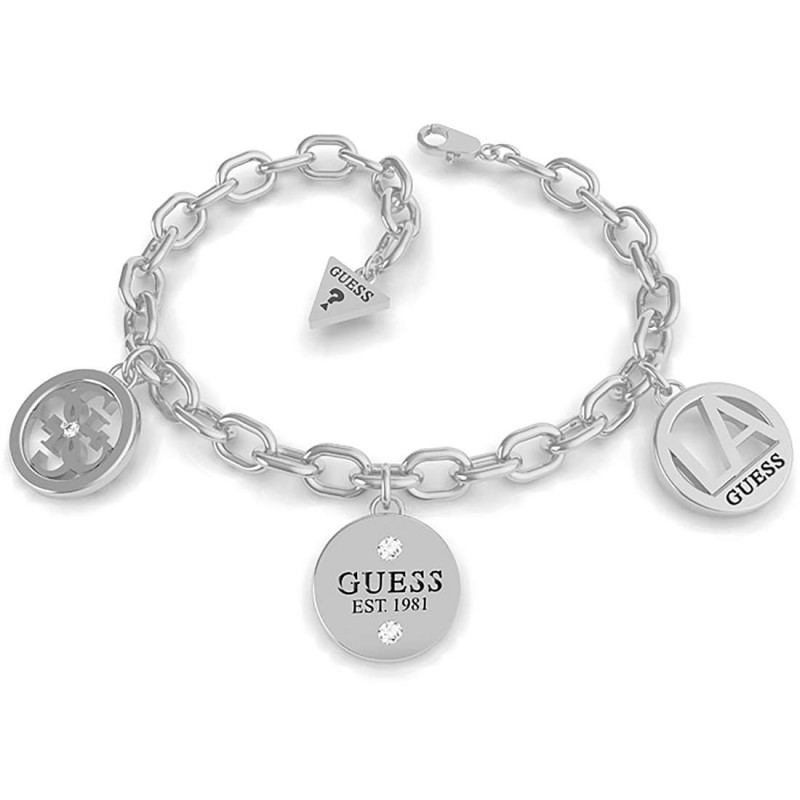 Bracciale Da Donna Di Guess. Bracciale Catena Quadrata In Acciaio Con Pendenti Loghi Guess E Punti Luce. La Referenza È Ubb79050-S.