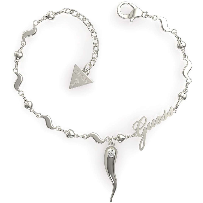 Bracciale Di Guess Da Donna. Bracciale In Acciaio Con Logo Guess E Inserto A Cornetto Con Cristallo Trasparente. Lunghezza 14-18 Cm. La Referenza È Ubb29003-S
