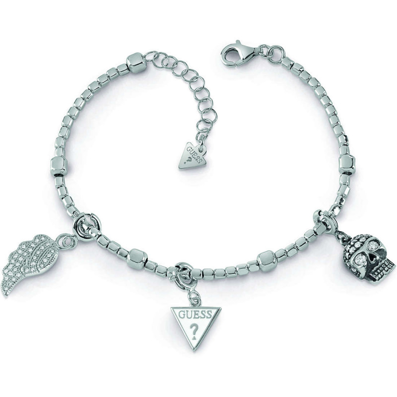 Bracciale Da Donna Di Guess. Gioiello Realizzato InArgento. Bracciale Con Charm Teschio, Ala E Triangolo Guess. La Referenza È Ubs29450