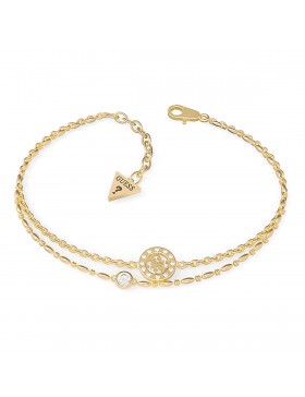 Bracciale da donna di Guess con doppia catena in acciaio IP oro, con logo 4G con Cristalli