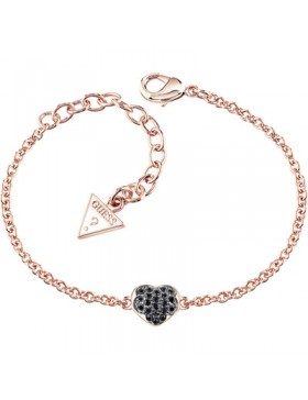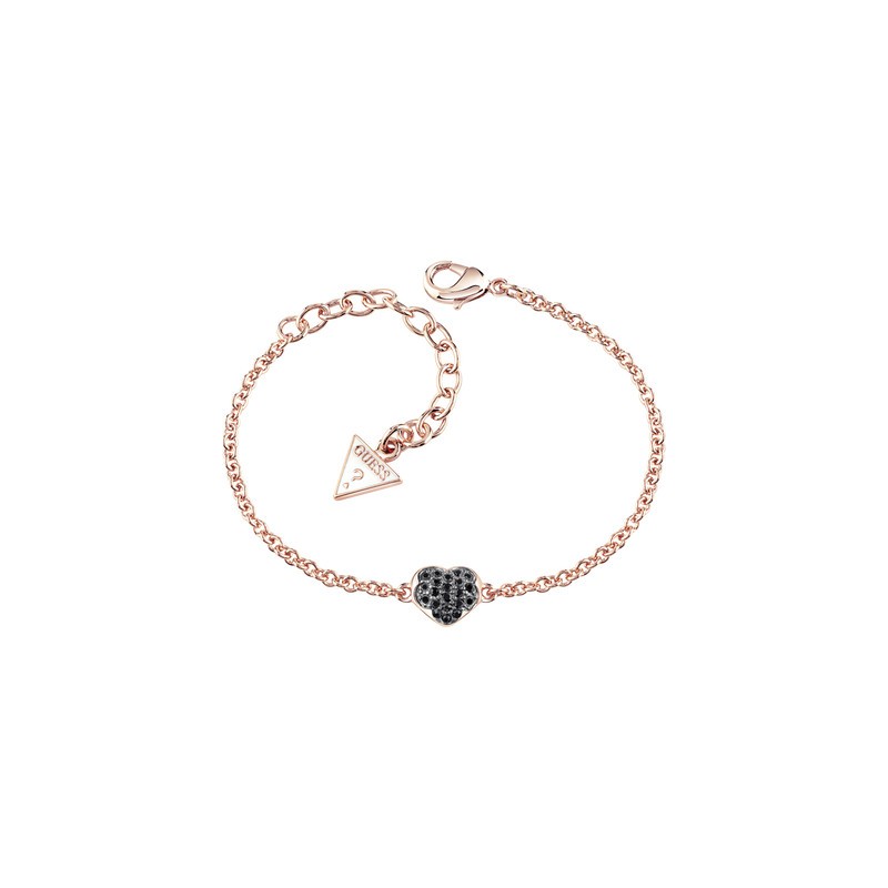 Gioiello GUESS Collezione Heartshelter. Bracciale Rose Gold, Cuore a Fiore con pavè di brillantini neri.
