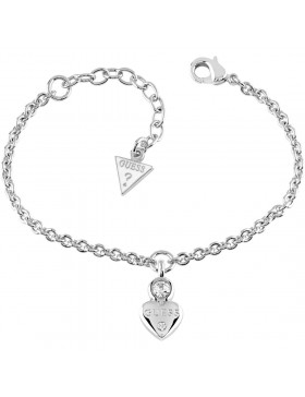 Bracciale di GUESS da donna. Bracciale di colore silver, charm a forma di cuore con due punti luce. lunghezza 14,6-18,4 cm. Il materiale di questo gioiello è metallo.