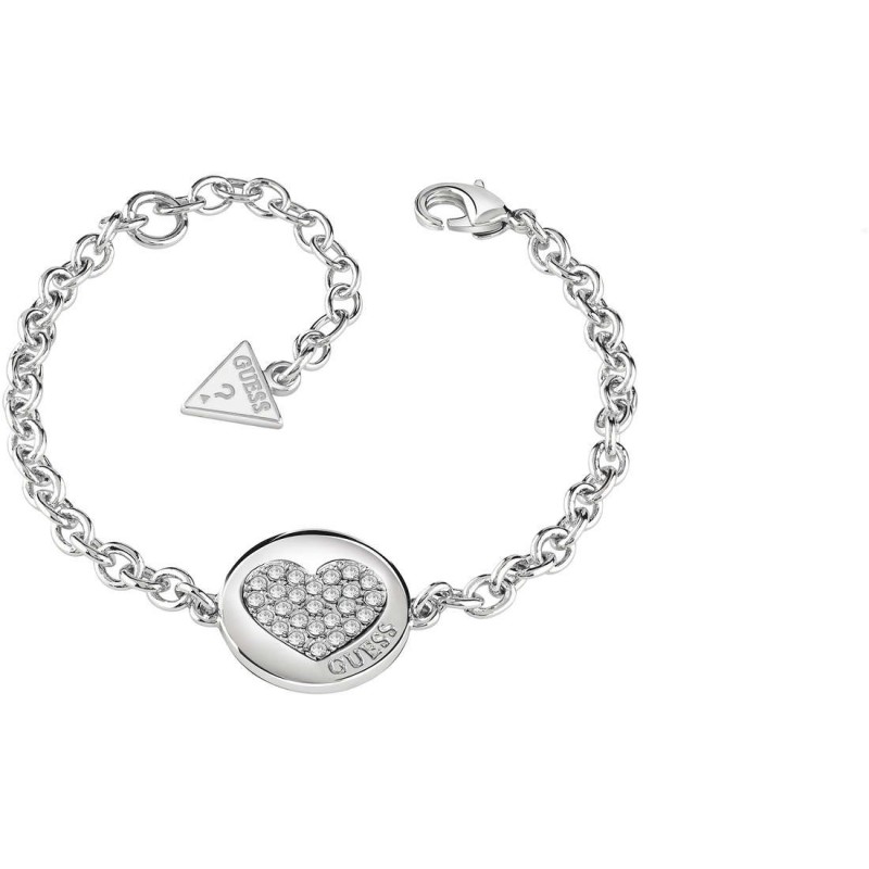 Bracciale di GUESS da donna. Bracciale di colore silver, medaglia doubleface con cuore di cristalli. Lunghezza 14,6-18,4 cm. Il materiale di questo gioiello è metallo.