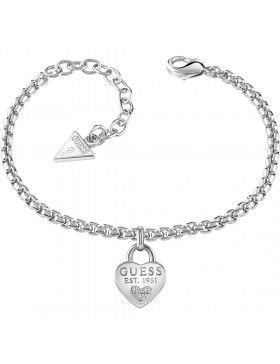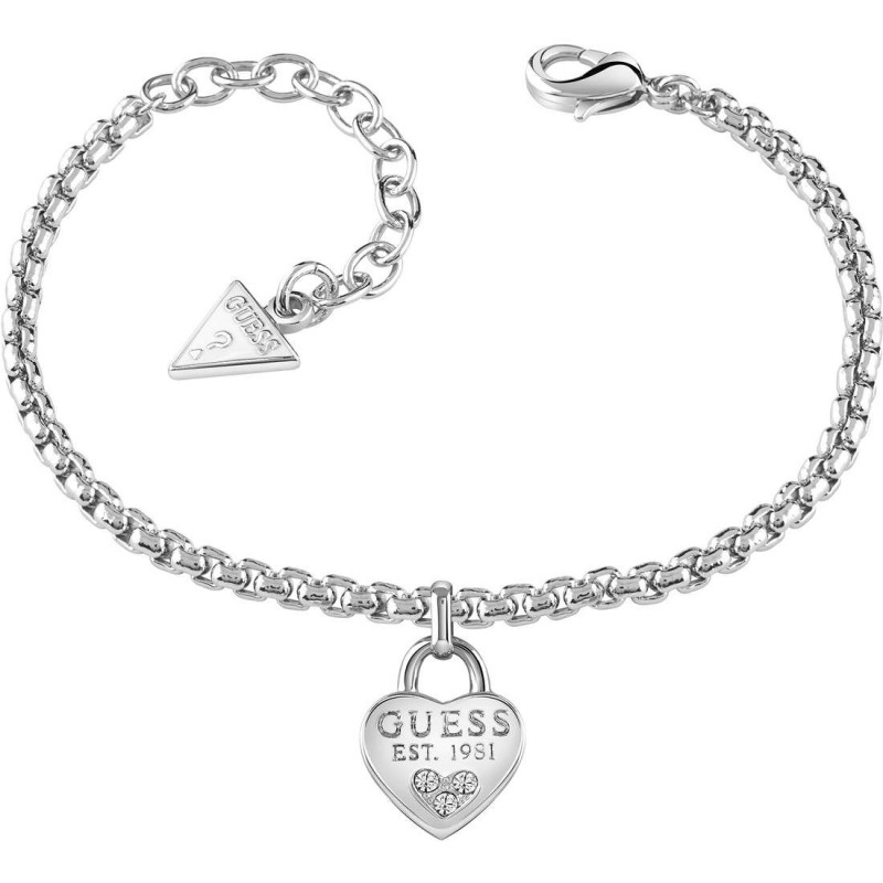 Bracciale Di Guess Da Donna. Bracciale Di Colore Silver, Charm Lucchetto A Cuore Con Punti Luce. Lunghezza 14,6-18,4 Cm. Il Materiale Di Questo Gioiello È Metallo.