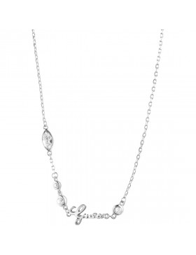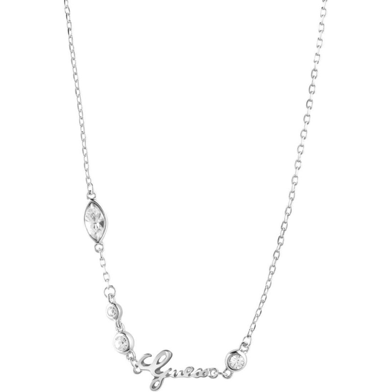 Gioiello Guess, Collezione Shiny Guess, Newness Early-Spring, Collana Silver, Scritta "Guess" E Cristalli Integrati. Lunghezza 41-46 Cm., Novità Gennaio 2016, Referenza: Ubn61022