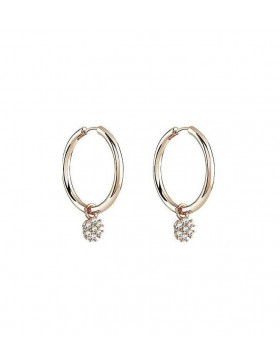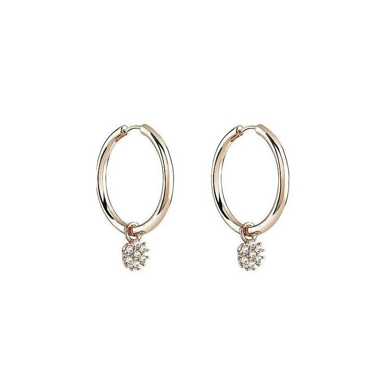 Orecchini Donna Guess in metallo a cerchio rosè, Charm Fiore con cristalli. Referenza UBE21546
