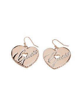 Gioiello Guess ref ube11109 orecchini a forma di cuore color oro rosa logati e con bordo in pavè di cristalli