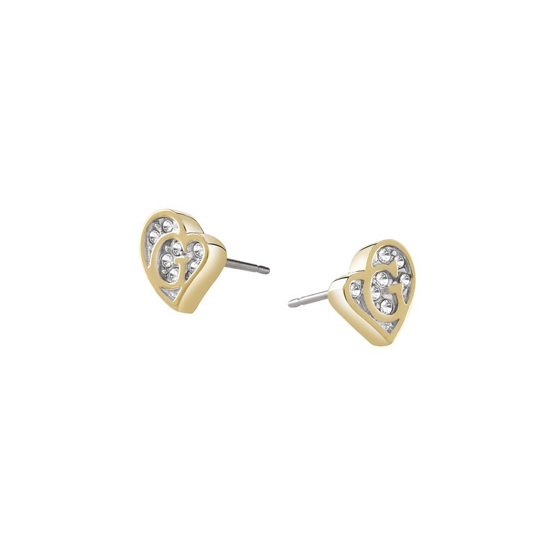 Gioiello Guess jewellery della collezione g hearts, novità fall-winter 2015. Orecchini a bottone gold, cuore con cristalli.