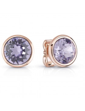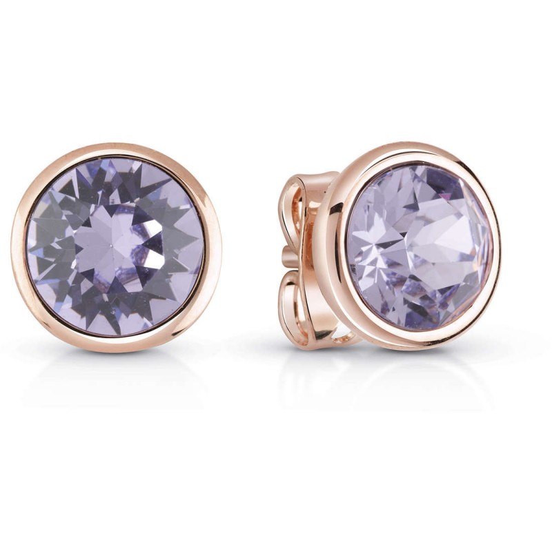 Orecchini da donna di Guess della collezione miami. Orecchini bottone rose-gold con cristalli lavanda