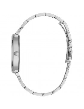 Orologio solo tempo da donna di Guess. Orologio con cassa del diametro di 38mm in acciaio lucido, quadrante silver con dettagli glitterati e bracciale acciaio lucido. La resistenza all'acqua è 3 atm. La referenza è w1231l1