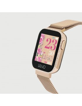 Smartwatch da donna di liu jo della collezione luxury. Smartwatch energy realizzato in acciaio e abs con cinturino in acciaio. La cassa è di colore oro rosa con cinturino oro rosa. Dimensioni cassa: cassa 39x34x11. La resistenza all'acqua è waterproof ip68. La versione bluetooth è bt 4. 0. Batteria: 220 mah li-polymer. Compatibile con android5. 0+-ios9. 0+. Il display è 1. 4 "color full touch". La distanza di comunicazione massima è di circa 10 metri. Funzioni: avviso di chiamata e notifica, pedometro, wrist sense, calorie, distanza, cronometro, freq. Cardiaca, pressione sanguigna, ossigenazione, timer, sleep monitor, sveglia, sedentary reminder, sport, avviso bere, music remote contol, meteo, scatto foto, ricerca smartphone, sfondo personalizzabile. La referenza è swlj011