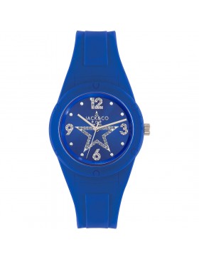 Orologio Jack&co , Cassa 40 mm , Cinturino in silicone blu navy , Quadrante blu navy con stella e indici con cristalli. Impermebilità 5 ATM