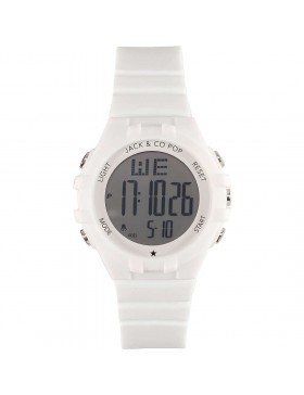 Orologio Jack&co , Cassa 34 mm , Cinturino in silicone bianco , Quadrante bianco digitale. Impermebilità 5 ATM