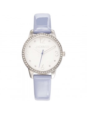 Orologio solo tempo da donna di JACK&CO della collezione DREAM. Orologio modello VALERIA con cassa del diametro di 32 mm in acciaio lucido con cristalli, quadrante bianco con dettagli bluette e cinturino in ecopelle bluette. Orologio con resistenza all'acqua di 5 atm