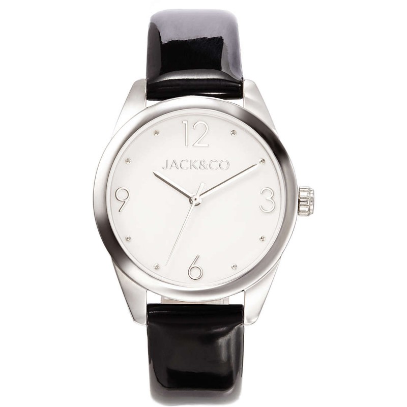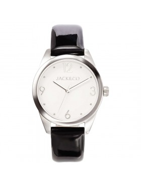 Orologio solo tempo da donna di JACK&CO della collezione DREAM. Orologio modello LAURA con cassa del diametro di 34 mm in acciaio lucido, quadrante bianco con dettagli silver e cinturino in ecopelle nero. Orologio con resistenza all'acqua di 5 atm.