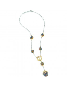 Collana da donna Just Cavalli della collezione Just Fierce, girocollo in acciaio con pvd in oro giallo con pietra occhio di tigre. Lunghezza del gioiello: cm 45.