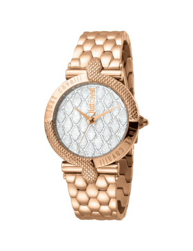 Questo Orologio da donna Just Cavalli ha un particolare bracciale in acciaio di color oro rosa con maglie ad effetto squame di serpente.