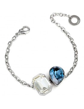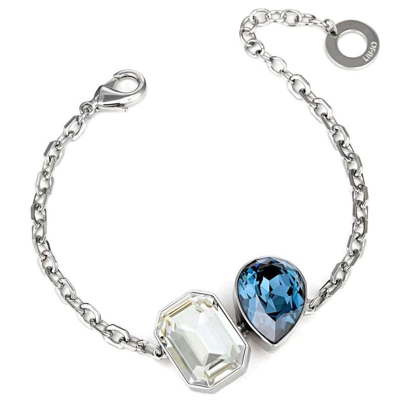 Bracciale Da Donna Di Liu Jo. Bracciale In Ottone Con Cristalli Swarowski Di Colore Bianco E Blu. Bracciale Con Catena Rolo'. Gioiello Della Lunghezza Di 18 Cm E Chiusura A Moschettone. La Referenza È Lj1182