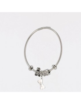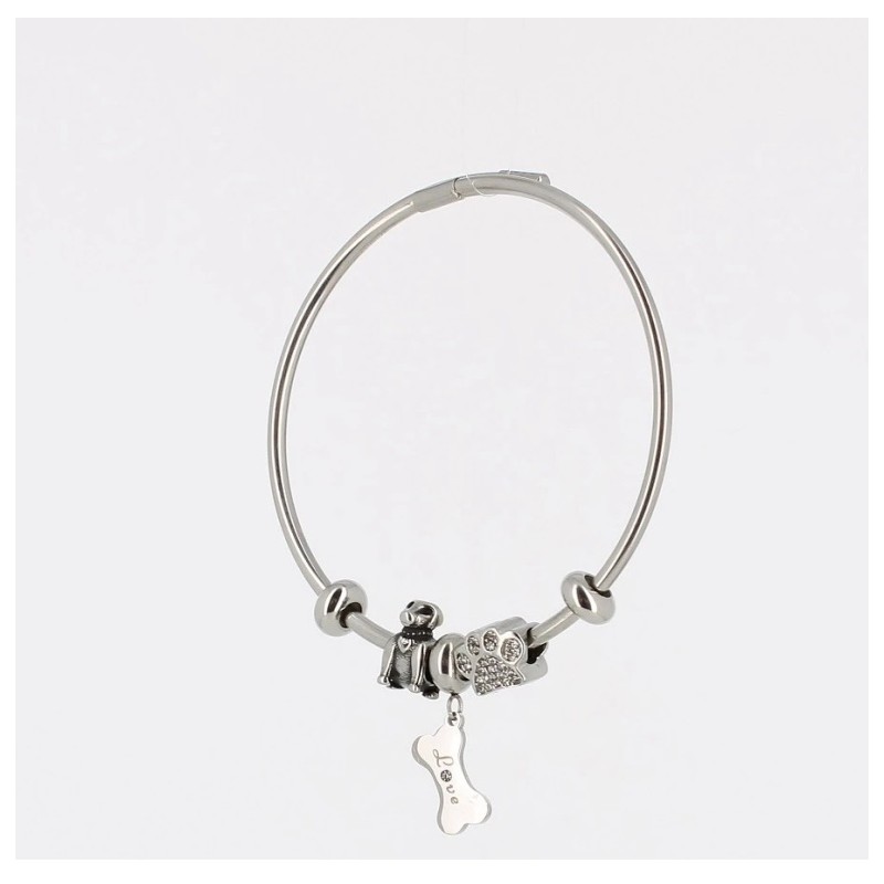 Liu Jo Bracciale Donna Bangle in Acciaio con Apertura Charms Cane, Osso con Scritta Love e Cristallo e Zampa con Cristalli