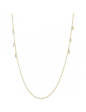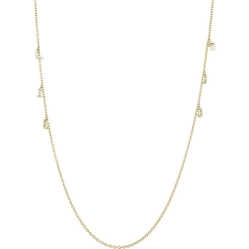 Collana Da Donna Di Liu Jo. Collana In Ottone E Ip Oro Giallo. Collana Con Catena Rolo' E Pendenti A Forma Di Lettere E Una Perla. Gioiello Della Lunghezza Di 90 Cm E Chiusura A Moschettone. La Referenza È Lj1061
