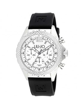 Orologio cronografo da uomo LIU JO della collezione DERBY in acciaio e silicone con zirconi, colore: bianco. tipo di chiusura: a farfalla. dimensione della cassa: 45mm.