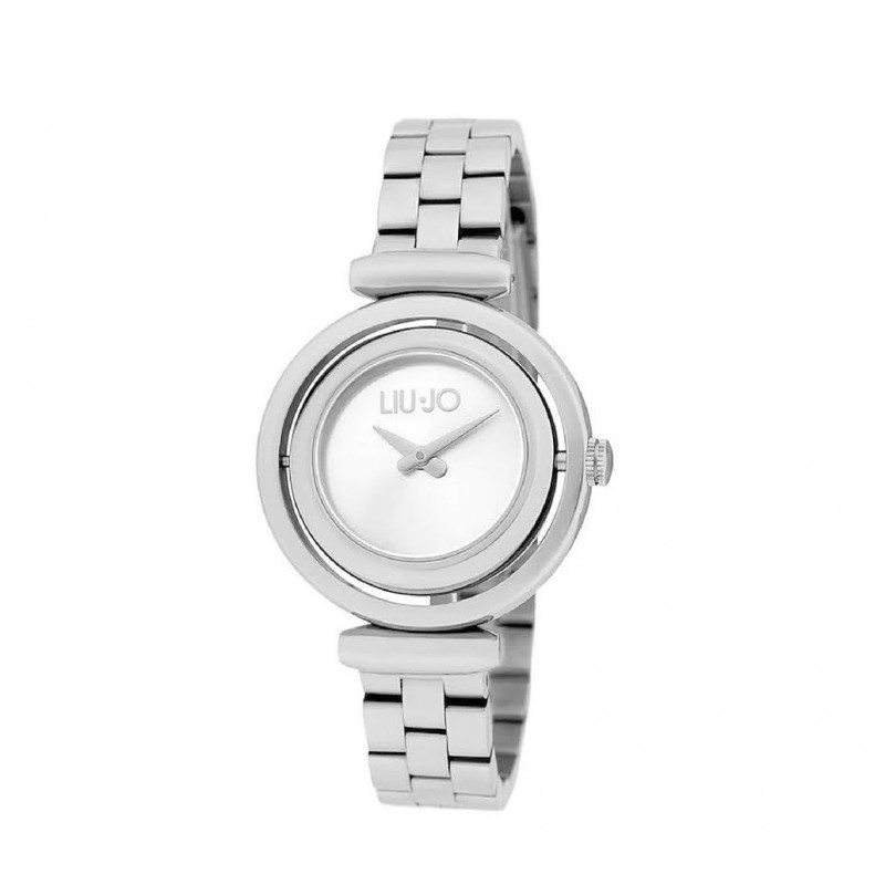 Orologio solo tempo da donna di liu jo. La cassa è realizzata in acciaio di colore argento. La dimensione della cassa è di 32mm. Il cinturino è in acciaio di colore argento. Orologio con miyota gl22. La resistenza all'acqua di è 3 atm. La referenza è tlj1902