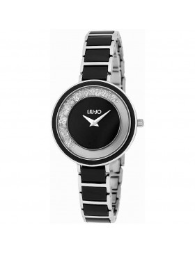 Orologio solo tempo da donna di liu jo. La cassa è realizzata in acciaio/ceramica di colore argento/nero. La dimensione della cassa è di 35 mm. Il cinturino è in acciaio di colore argento/nero. Orologio con miyota 2025 movement. La resistenza all'acqua di è 3 atm. La referenza è tlj1910
