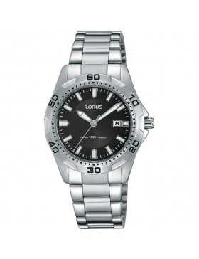 Solo Tempo da donna di LORUS della collezione sports. Solo Tempo con movimento al quarzo. caratterizzato da cassa in acciaio 30 mm, con datario, vetro minerale, sfere con lumibrite, fondello a vite e bracciale in acciaio. la resistenza all'acqua è di 10 atm