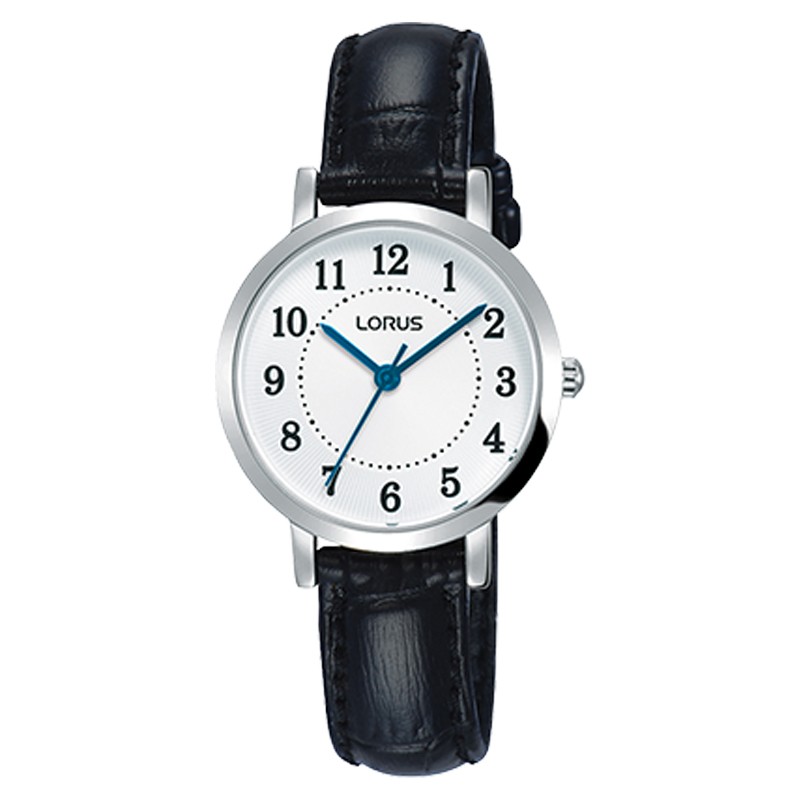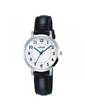 Orologio Solo tempo da donna di LORUS in vetro minerale, cassa in ottone e cinturino in pelle nera.