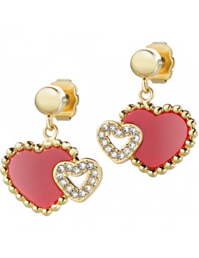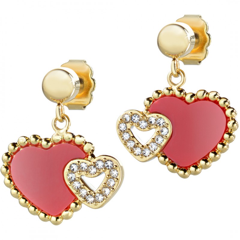 Orecchini donna MORELLATO SAGF06 collezione Sempre Insieme - Orecchini Pvd Oro Giallo, Pasta Rosso Corallo, Con Cristalli Bianchi, Dimensione Lunghezza 2 Cm, Cuore Cm 1