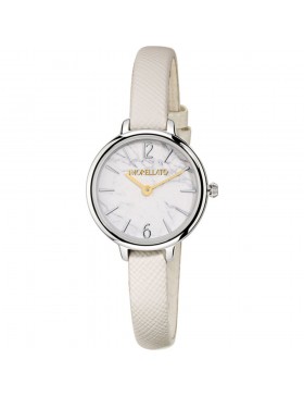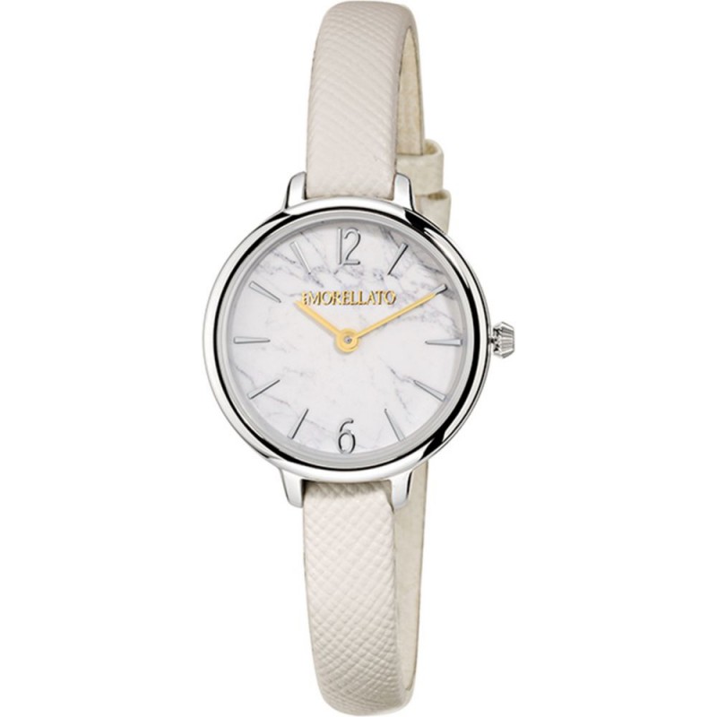 Orologio Solo Tempo Da Donna Di Morellato Della Collezione Petra. Modello Con Cassa In Acciaio Della Dimensione 26X30.9Mm, Quadrante Di Colore Bianco Con Due Indici E Numeri Arabi A 6H E 12H E Vetro Minerale. Il Bracciale È Realizzato In Pelle Di Colore Bianco Con Fibbia Ardiglione. Orologio Al Quarzo Con Movimento Mvt Tmi Vj20 2H Type M. La Resistenza All'Acqua È 5 Atm.