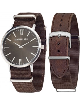 Orologio Morellato, Collezione Vela, Funzione solo tempo, Cassa in acciaio, di forma rotonda, 40mm, Quadrante con indici, cinturino in stile nato in canvass e pelle, marrone, resistenza all'acqua 5 ATM