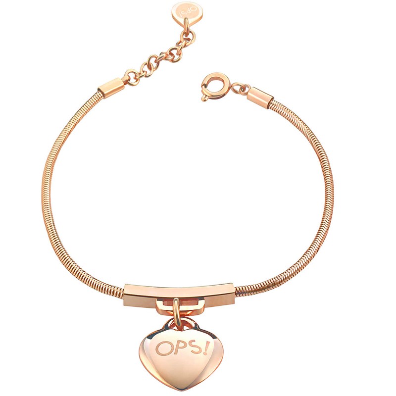 Bracciale Ops Della Collezione Snake, In Acciaio Rosato, Colore:, Dimensioni: Cuore In Acciaio Rosato Cm 1 - Lunghezza Catena 20 Cm, Chiusura: Moschettone In Acciaio