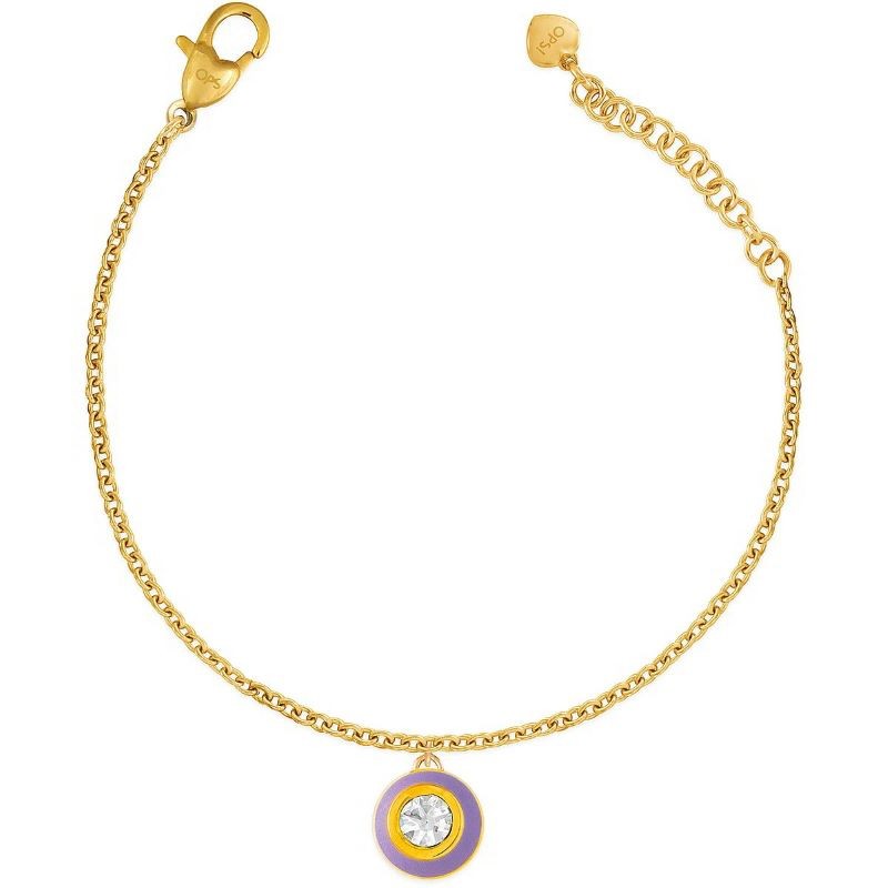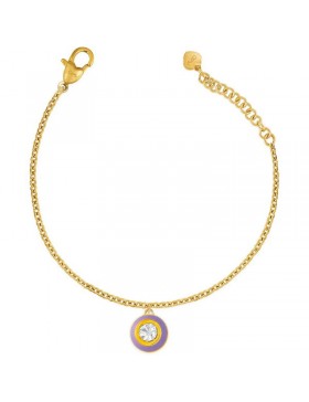 Bracciale da donna di Ops Objects della collezione precious candy. Bracciale realizzato in acciaio lucido color oro con pendente cerchio smaltato lilla e cristallo. La chiusura è a moschettone. La referenza è opsbr-777