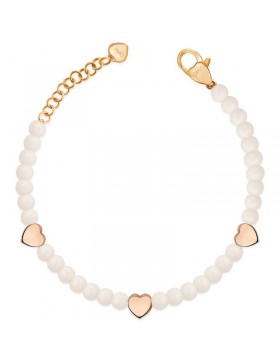 Bracciale da donna di Ops Objects della collezione love spheres. Bracciale realizzato in acciaio color oro rosa con pietre semi-preziose bianche e cuori. La chiusura è con moschettone. La referenza è opsbr-779