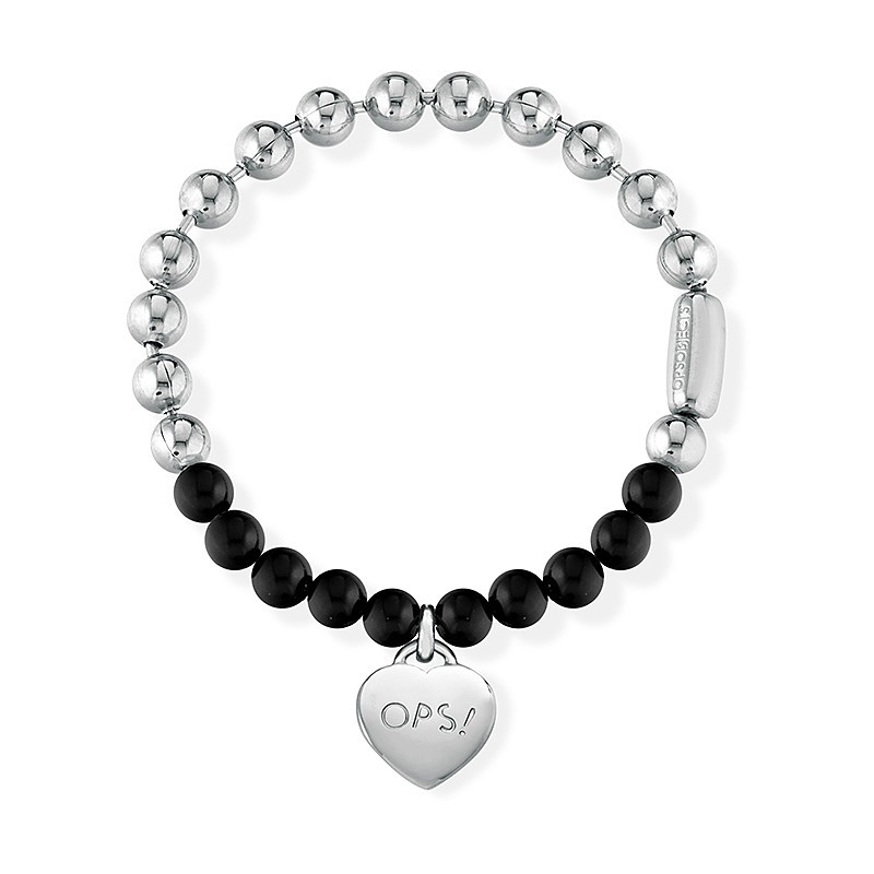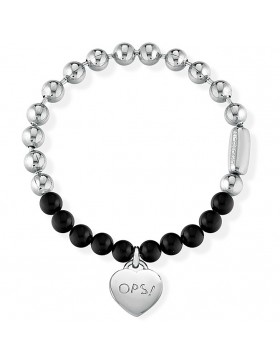 Collana donna con sfere in acciaio color argento e sfere nere con pendente cuore in acciaio logato OPS! La sfera, simbolo di perfezione e regolarità classica insieme con la perla, sintesi di purezza ed eleganza, diventano elementi chiave di uno stile pop sofisticato. Ad appropriarsi di questi simboli è la collezione BUBBLES che mixa le sfere in acciaio silver e rose gold alle perle bianche o nere, donando un tocco più street al più classico tra i gioielli, il filo di perle, e si liberano di ogni cliché per essere indossati con le petite robe noir tanto quanto con una salopette di jeans.