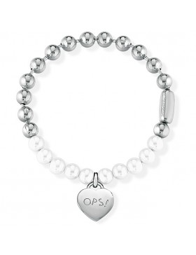 Collana donna con sfere in acciaio color argento e perle bianche con pendente cuore in acciaio logato OPS! La sfera, simbolo di perfezione e regolarità classica insieme con la perla, sintesi di purezza ed eleganza, diventano elementi chiave di uno stile pop sofisticato. Ad appropriarsi di questi simboli è la collezione BUBBLES che mixa le sfere in acciaio silver e rose gold alle perle bianche o nere, donando un tocco più street al più classico tra i gioielli, il filo di perle, e si liberano di ogni cliché per essere indossati con le petite robe noir tanto quanto con una salopette di jeans.
